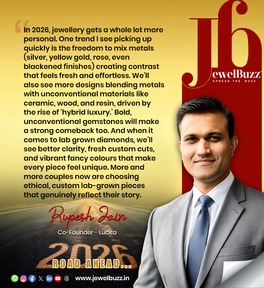 From soaring gold and rising environmental consciousness to hybrid designs and LGD-led disruption, 2026 will be a year where jewellery becomes more personal, transparent, tech-integrated and value-driven.The industry stands poised for innovation, ethical leadership and resilient growth—marking the start of a new chapter for India’s jewellery landscape.