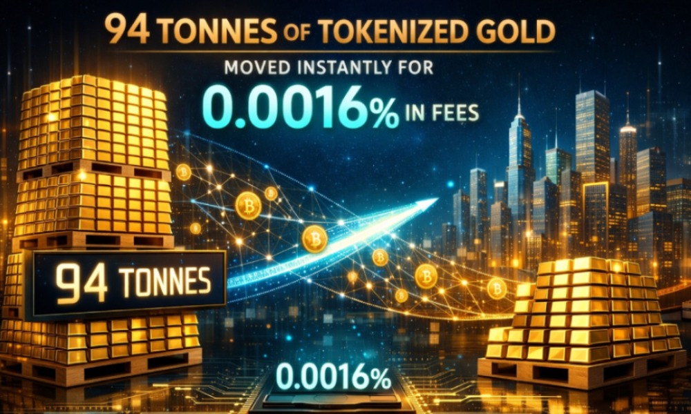 94 tonnes of tokenized gold moved instantly for 0.0016% in fees