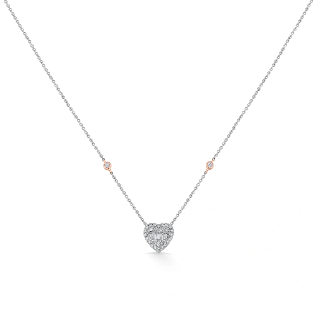 Part of the Love Knot Collection, this exquisite necklace celebrates timeless bonds with graceful designs adorned with natural diamonds. The heart-shaped pendant exudes elegance and sophistication, making it perfect for romantic evenings, milestone celebrations, anniversaries, or elegant soirées. Worn close to the heart, this necklace adds a touch of refined luxury to any moment worth cherishing, transforming everyday occasions and special milestones alike into memories that sparkle.