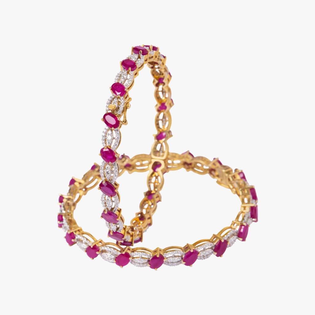 These magnificent gold bangles from Kalyan Jewellers dazzle with alternating oval-cut rubies and brilliant diamond accents. Their intricate design creates a luxurious, sparkling embrace for her wrist. Gift this breathtaking pair to your sister this Bhai Dooj, a radiant testament to your affection and her brilliant spirit.