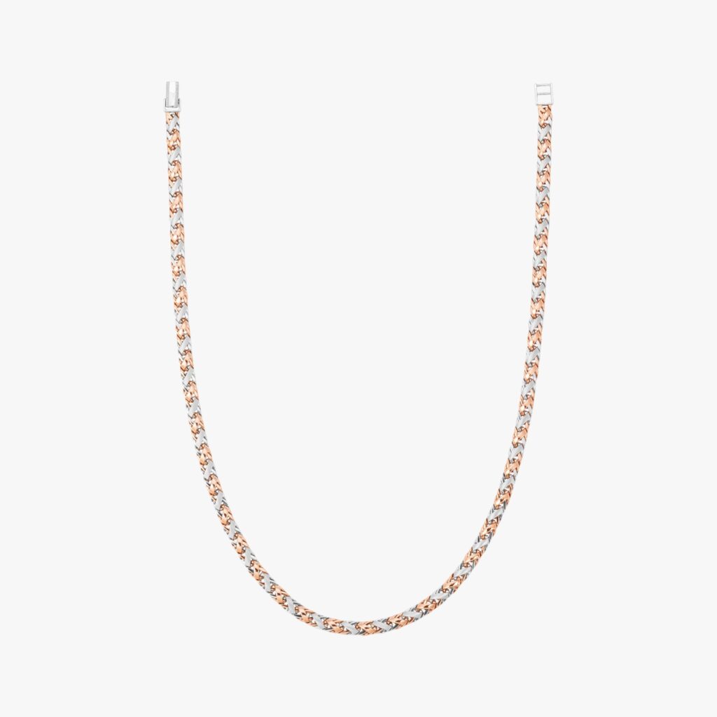 This dual-tone men’s chain from Kalyan Jewellers features a modern wheat/foxtail link design in alternating white and rose gold-tones. Its sleek, braided pattern symbolizes strength and continuity. Gift this timeless, luxurious piece to your brother this Bhai Dooj as a beautiful token of your unbreakable bond.