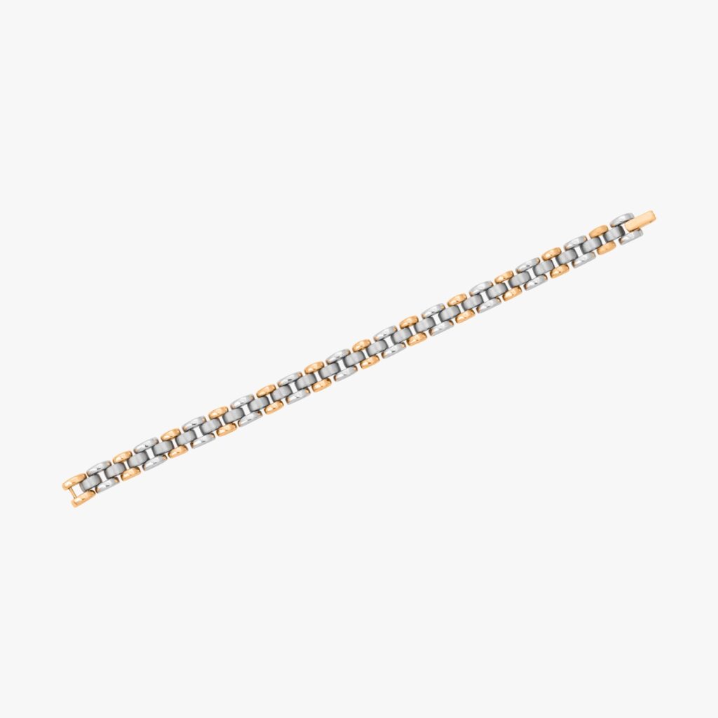 This sleek men’s bracelet from Kalyan Jewellers features a contemporary dual-tone link design, alternating between white gold and rose gold segments. Its refined, masculine aesthetic offers versatile style. Gift this elegant piece to your brother this Bhai Dooj, a beautiful symbol of your enduring connection and sophisticated taste.