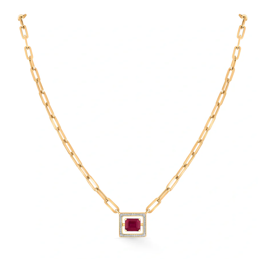 Draped in 18KT gold and illuminated with natural diamonds, the Crimson Majesty Pendant captures the warmth and grandeur of the Christmas season. Its bold brilliance reflects the glow of festive lights, making it a striking choice for winter weddings, Christmas soirées, and elegant year-end celebrations. Designed as more than adornment, this heirloom-worthy piece embodies timeless craftsmanship and the magic of festive traditions