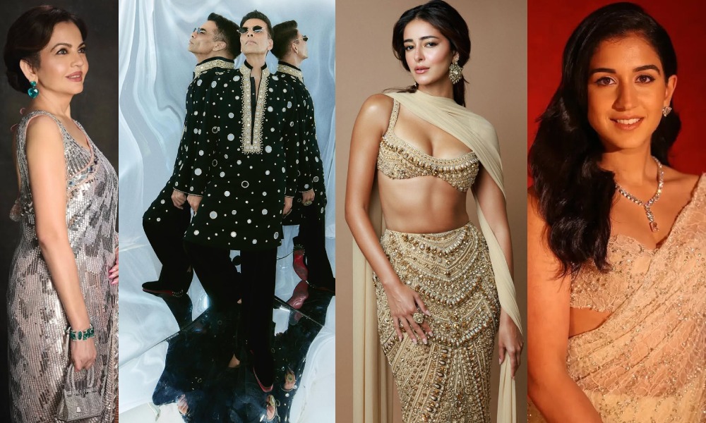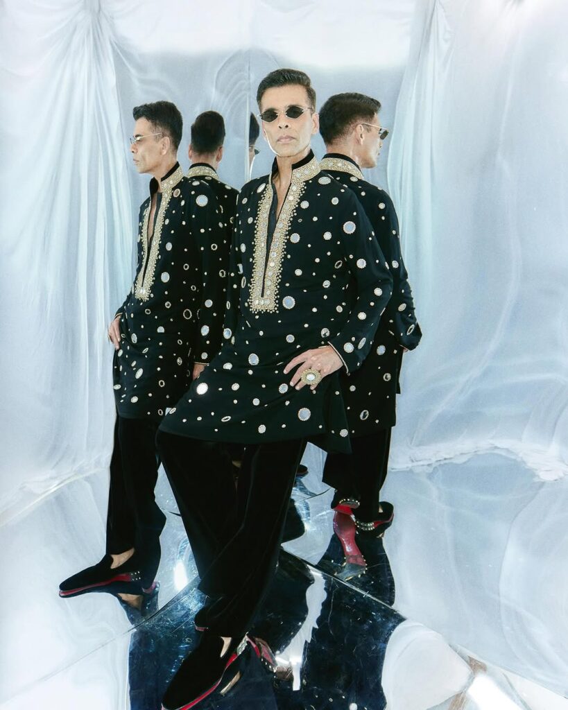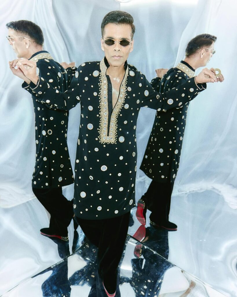 Filmmaker Karan Johar showcased his signature flair in a black sherwani embellished with gold polka detailing, styled by Eka Lakhani. His regal yet modern outfit exuded festive authority. Sharing glimpses from the night, he described the evening as “a beautiful blend of warmth, glamour, and love.” Once again, KJo proved that no one celebrates fashion quite like him.