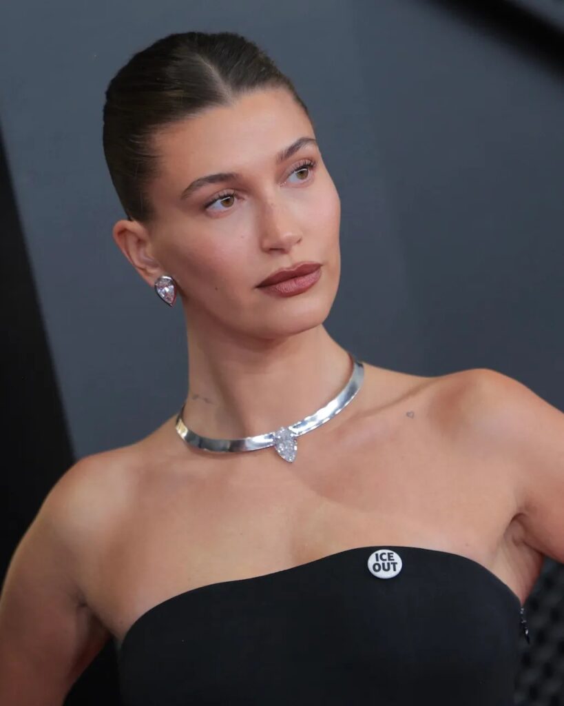 Hailey Bieber complemented the moment with a statement diamond necklace of her own, creating a coordinated appearance that placed jewellery at the heart of their red-carpet styling. Together, their look echoed the way statement necklaces hold importance in Indian festive and bridal fashion.