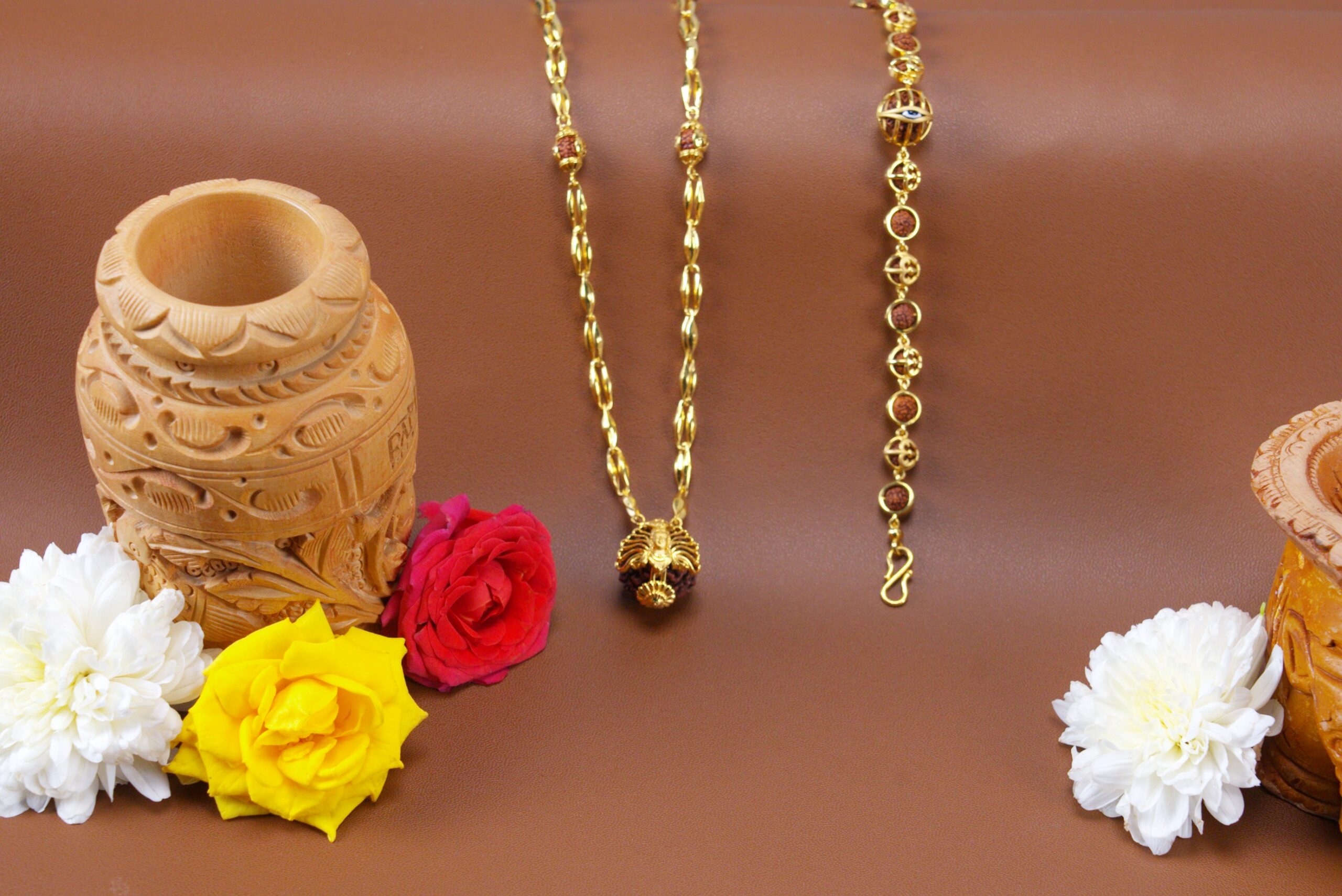 - Platinum Tulsi and Rudraksha Chains & Bracelets, blending sacred symbolism with timeless strength