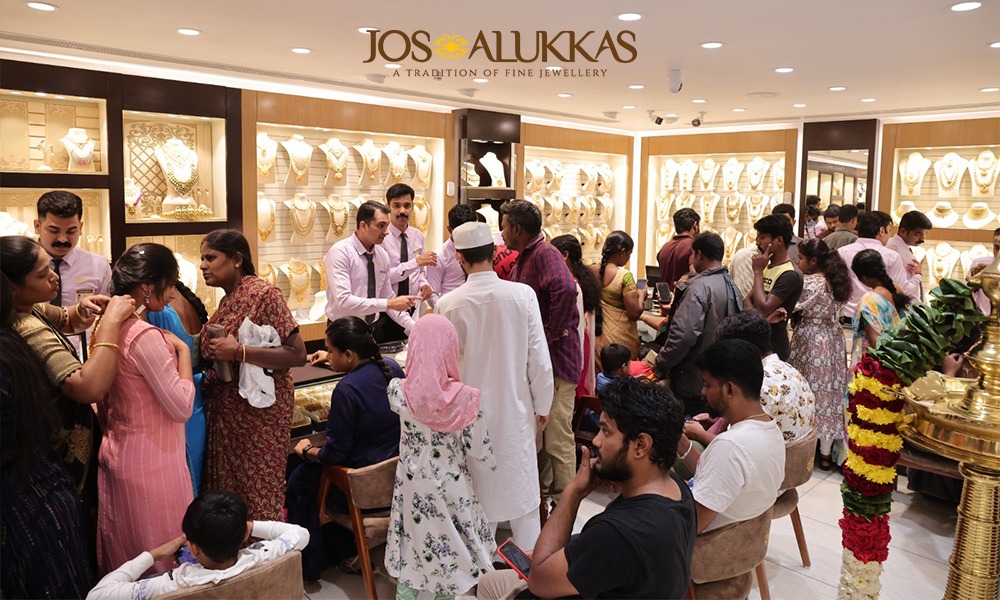 Booking offers are currently available at Jos Alukkas, allowing customers to pay just 10% and benefit from gold rate protection, providing an enhanced and rewarding shopping experience with a wide selection of gold, platinum, and diamond jewellery.