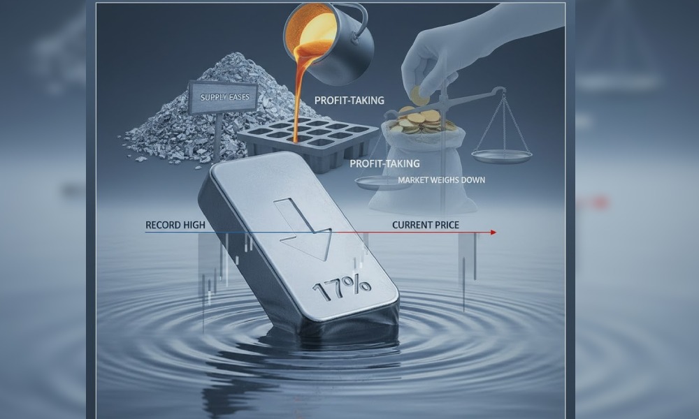 Silver Prices Drop 17% from Record High as Supply Eases, Profit-Taking Weighs on Market