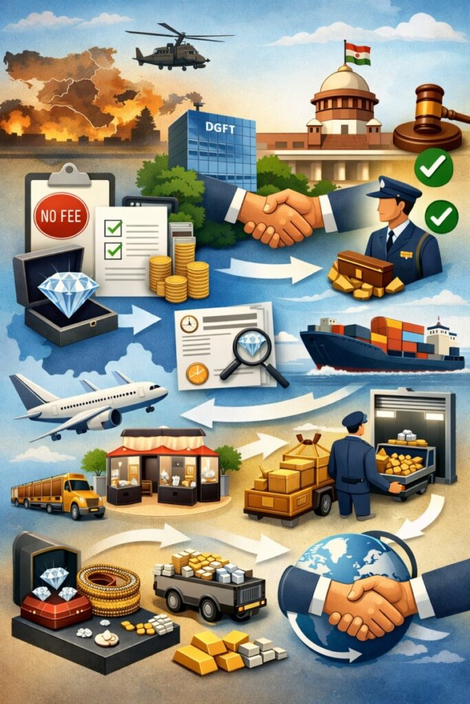 In response to geopolitical disruptions impacting global trade and logistics, the government has announced a one-time procedural relaxation for the gems & jewellery sector.