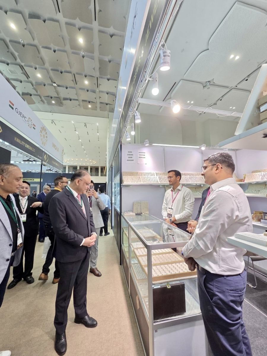 GJEPC organised the India Pavilion at the Bangkok Gem and Jewelry Fair, featuring 16 companies across 23 booths. H.E. Nagesh Singh, Ambassador of India to Thailand, inaugurated the pavilion with a ribbon-cutting ceremony.