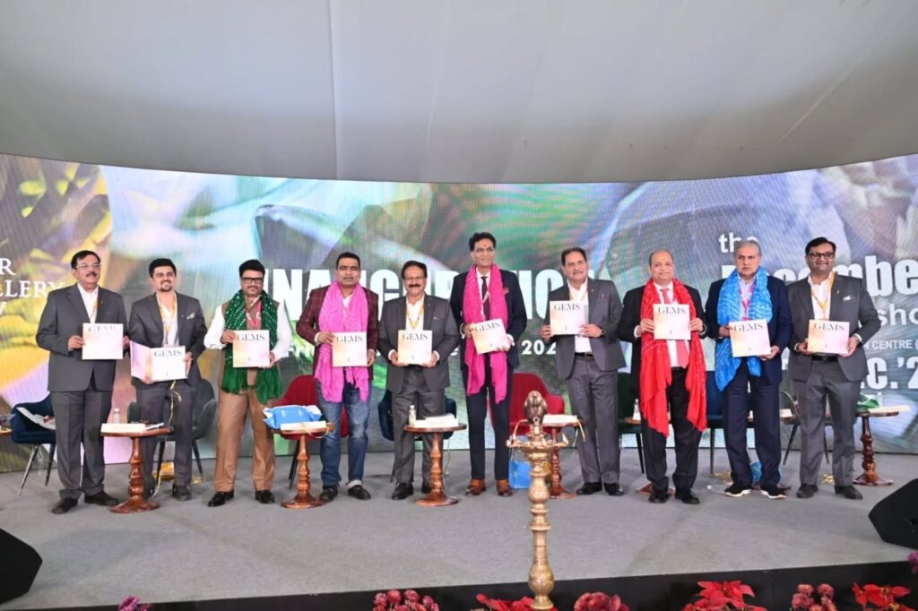 Chairman of National Gems and Jewellery Council of India, Pramod Agrawal (Derewala), in his address, stated that owing to the industry-friendly policies of the Government of India, the gems and jewellery sector is progressing steadily. Mr. Agrawal highlighted several important points, including the Government’s support to the MSME sector and the need to make hallmarking mandatory for silver jewellery. He also emphasised that the industry must focus equally on the domestic market as it does to exports.