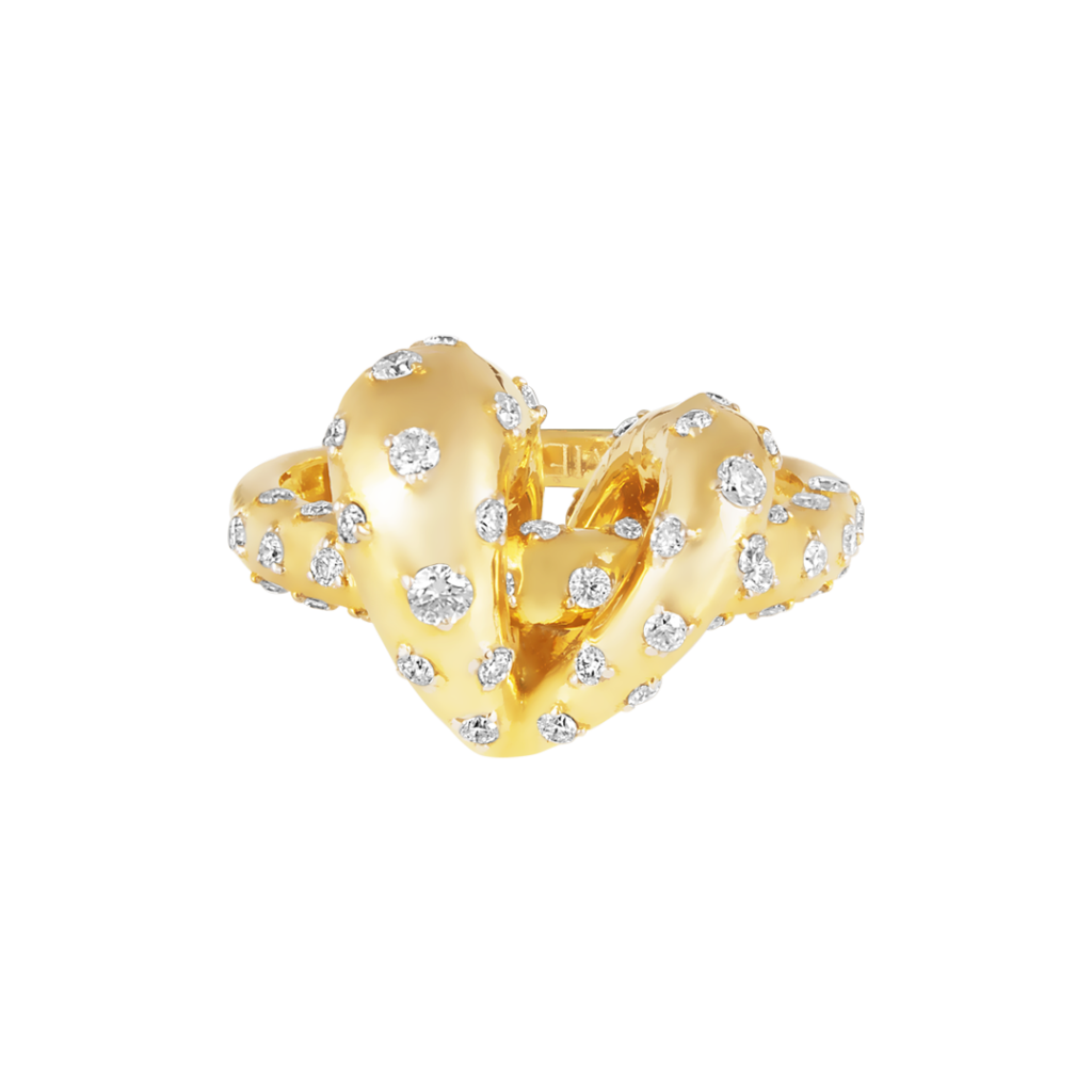 At the core of the collection is a sculptural heart motif crafted from two flowing ribbons of 18-karat gold. When held upright, the design subtly reveals the letter “M” — symbolising “mine” — a quiet yet powerful reminder of the promise to choose oneself. The motif reflects both emotional depth and contemporary minimalism, aligning with the brand’s philosophy of meaningful fine jewellery.