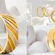 These platinum kadas introduce an architectural mood. One features stepped segments balanced with rose-toned links, creating a structured rhythm. The other uses a sweeping chevron-like pattern for a more fluid feel. Both designs blend structure and ease, offering refined style for Men’s Day.