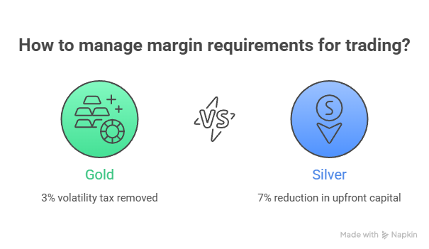 - Silver: The more volatile sibling sees a significant 7% reduction in required upfront capital.