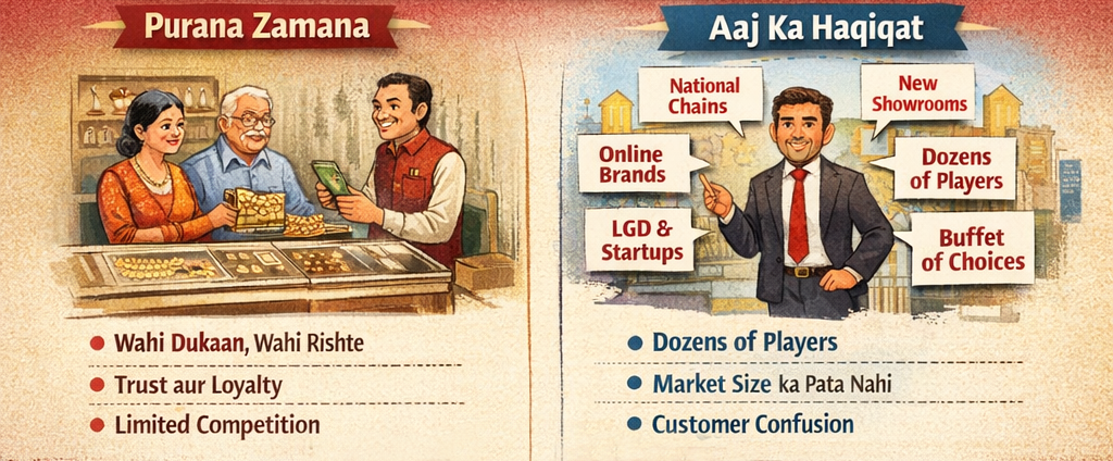GJC Labham event, Meerut mein ek successful jeweller se baat ho rahi thi. Market mein unka naam hai. Growth story maane jaate hain.Maine poocha, “Aaj kal sabse bada tension kya hai?”