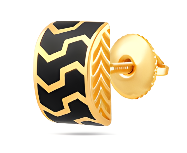 Bold yet refined, this men’s gold stud earring from Candere features a striking black enamel finish accented with a modern geometric pattern. Crafted in polished gold, the design blends contemporary style with everyday versatility, making it a standout accessory for men who appreciate subtle yet distinctive jewellery.