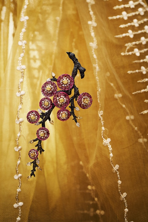 Embroidery reimagined textile traditions as structure, where elements like lace, thread, and brocade were translated into metal and gemstones. Techniques such as filigree and jali evolved into intricate frameworks, creating pieces that felt layered, lightweight, and architectural.