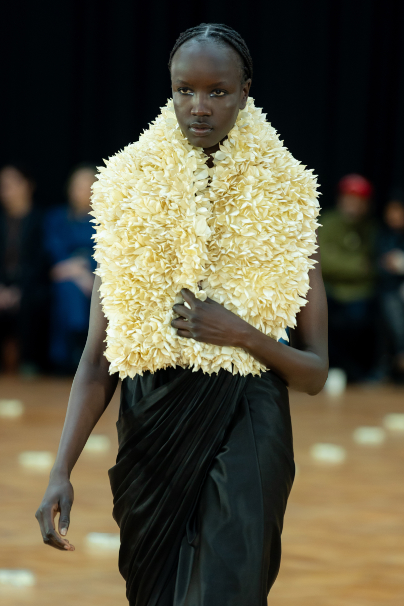 At its inaugural show on an international stage, Raw Mango debuted their Fall Winter 2026 collection It’s Not About The Flower at London Fashion Week. Drawing inspiration from the ubiquitous garland—which is a humble, albeit important part of everyday life in South Asia—the collection blurs the line between decoration and that which is decorated. The focus with this collection shifts from the individual motif to the arrangement, from surface-level engagements to a deeper interrogation of value and beauty, from the flower to the garland.