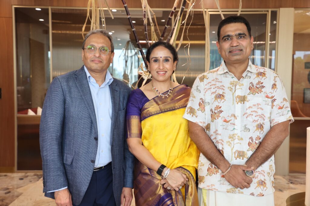 The atmosphere was transformed by elaborate festive decorations that captured the vibrant spirit of the occasion. In a moment of true grace, Maya Rajesh, wife of Rajesh Kalyanaraman guided the audience through the rhythmic preparation of the Pongal dish, weaving a narrative of heritage and community. As she lit the auspicious flame, allowing guests to share in its warmth and blessing, the room was filled with a sense of profound reverence. It was a moving reminder of the beauty found in keeping our sacred traditions and cultural sanctity vibrantly alive.