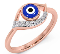The Evil Eye Half Diamond Ring: A study in modern minimalism. Its clean half-frame design gives a fresh twist to the traditional motif, while a row of diamonds adds just the right touch of sparkle. It’s a ring that whispers elegance, perfect for styling with both ethnic wear during Diwali and casual Western outfits.