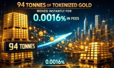 International News6 minutes ago94 tonnes of tokenized gold moved instantly for 0.0016% in fees