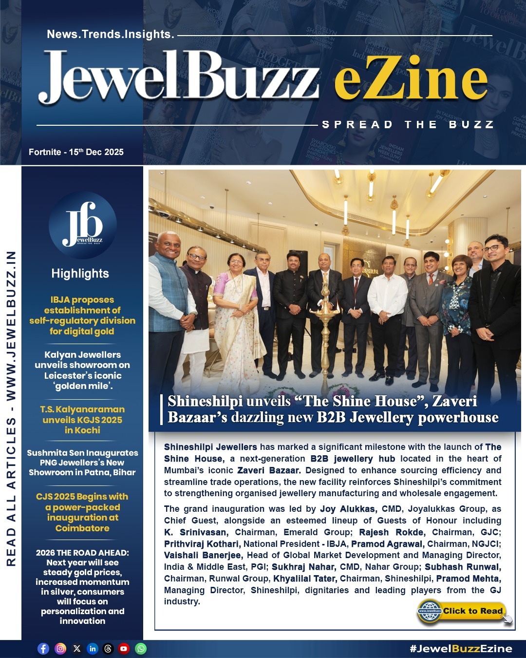 The JewelBuzz E-zine, the digital newsletter from A M MEDIA, is published every fortnight and offers a concise yet comprehensive roundup of industry news, developments, brand launches, and retail expansions over the past 15 days. With its user-friendly format and wide digital reach, it has become a preferred platform for both JewelBuzz readers and advertisers alike.