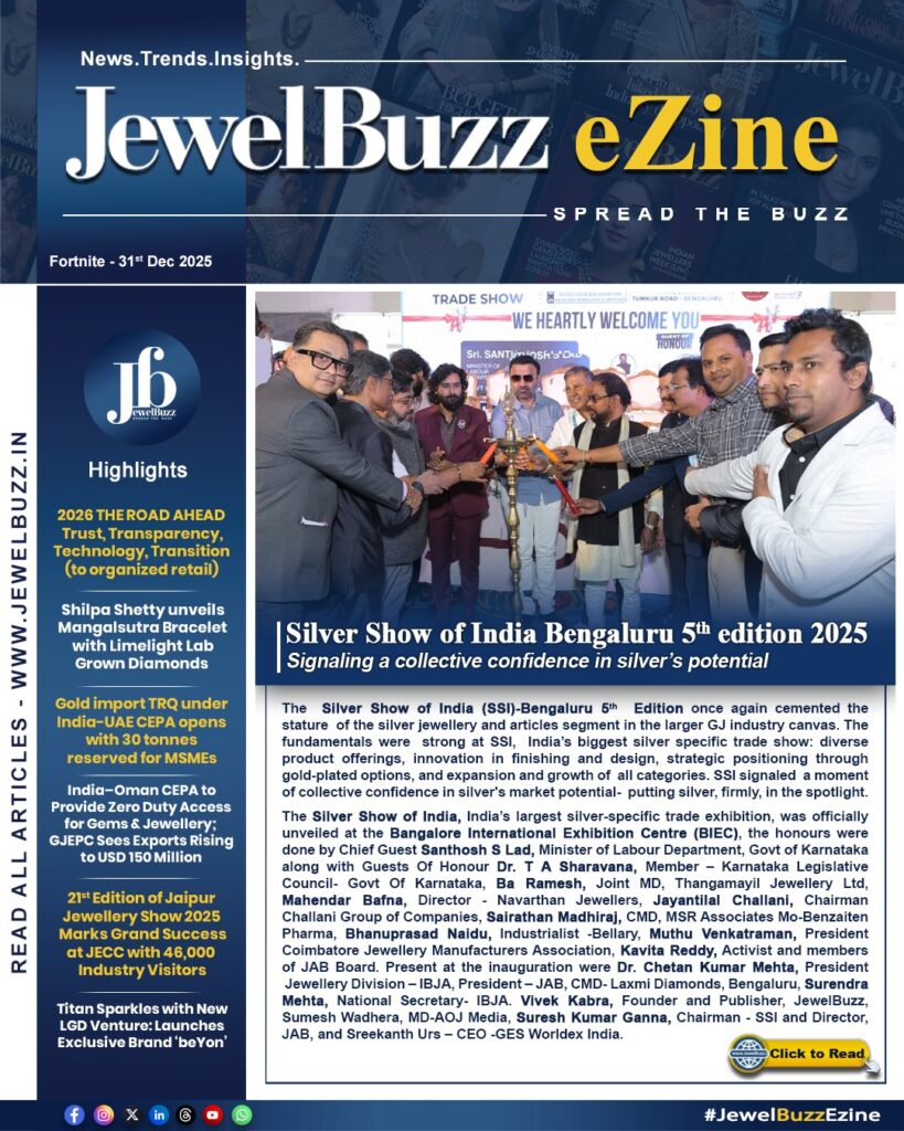 Over the past 15 days, the industry witnessed key policy updates, major trade events, brand expansions, and noteworthy launches. Recent highlights include knowing the Road Ahead for the year 2026 by well-known industry stalwarts and their brands along with latest industry news updates such as 2026 THE ROAD AHEAD Trust, Transparency, Technology, Transition (to organized retail), Shilpa Shetty unveils a Modern Reinterpretation of her Iconic Mangalsutra Bracelet with Limelight Lab Grown Diamonds, Gold import TRQ under India-UAE CEPA opens with 30 tonnes reserved for MSMEs, India–Oman CEPA to Provide Zero Duty Access for Gems & Jewellery; GJEPC Sees Exports Rising to USD 150 Million, 21st Edition of Jaipur Jewellery Show 2025 Marks Grand Success at JECC with 46,000 Industry Visitors, Titan Sparkles with New LGD Venture: Launches Exclusive Brand ‘beYon’ & more…
