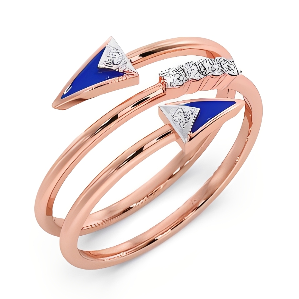 Sleek, contemporary and full of character, The Arrow Triad Diamond Ring is crafted in fine gold with striking arrow motifs accented by shimmering diamonds and vibrant enamel detailing. Its layered silhouette adds dimension and edge, making it a modern statement designed for confident, everyday styling.