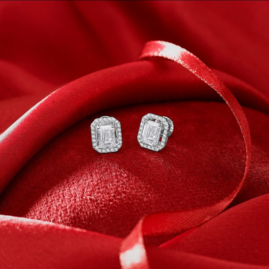 For the woman who balances power with elegance, the Emerald Solitaire Earrings are a reflection of quiet strength. Made in 18KT white gold and set with 51 radiant diamonds, these earrings bring a sculpted, refined sparkle that complements both evening glamour and everyday sophistication.