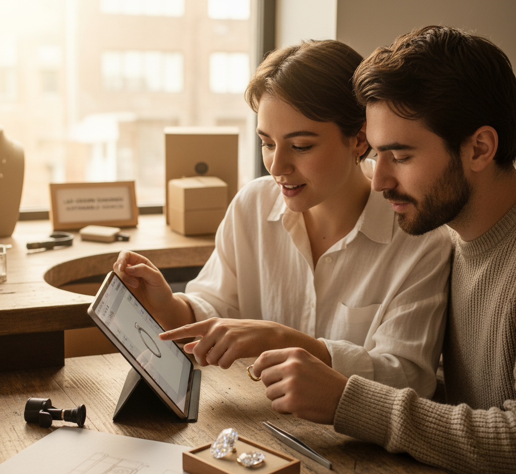 This value-driven mindset is also prominent in the bridal segment. Younger couples view the engagement ring as a shared emotional investment, not a surprise. Key factors are quality (96%), customization (76%), and sustainability (88% of Gen Z). To manage budgets (average spend is $\$4,000-\$6,000$), many are embracing lab-grown diamonds for value. Current design trends favor refined simplicity: clean, minimal solitaires with elongated cuts (oval, cushion, marquise) in yellow gold, signaling individuality over overt opulence.