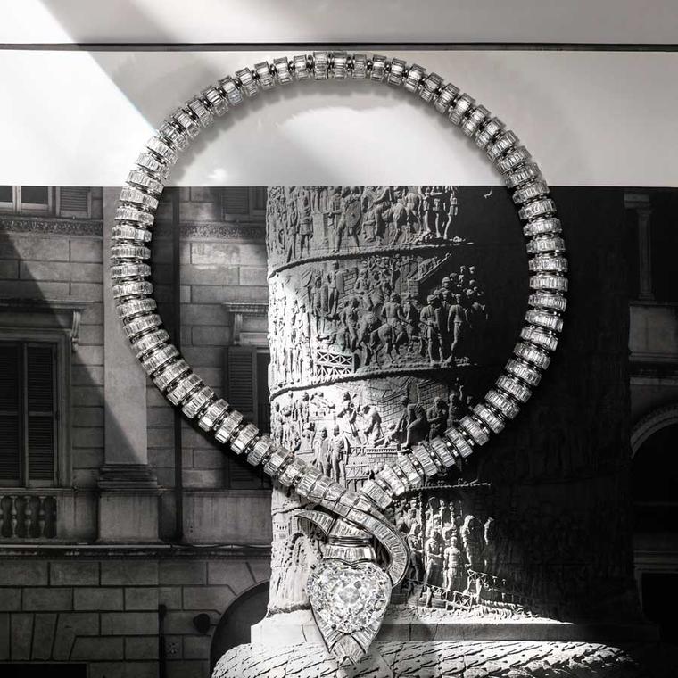 Serpenti Illusio necklace, playing with negative space and form, and the Eclectic Embrace collar inspired by the intricate architecture of Sammezzano Castle.